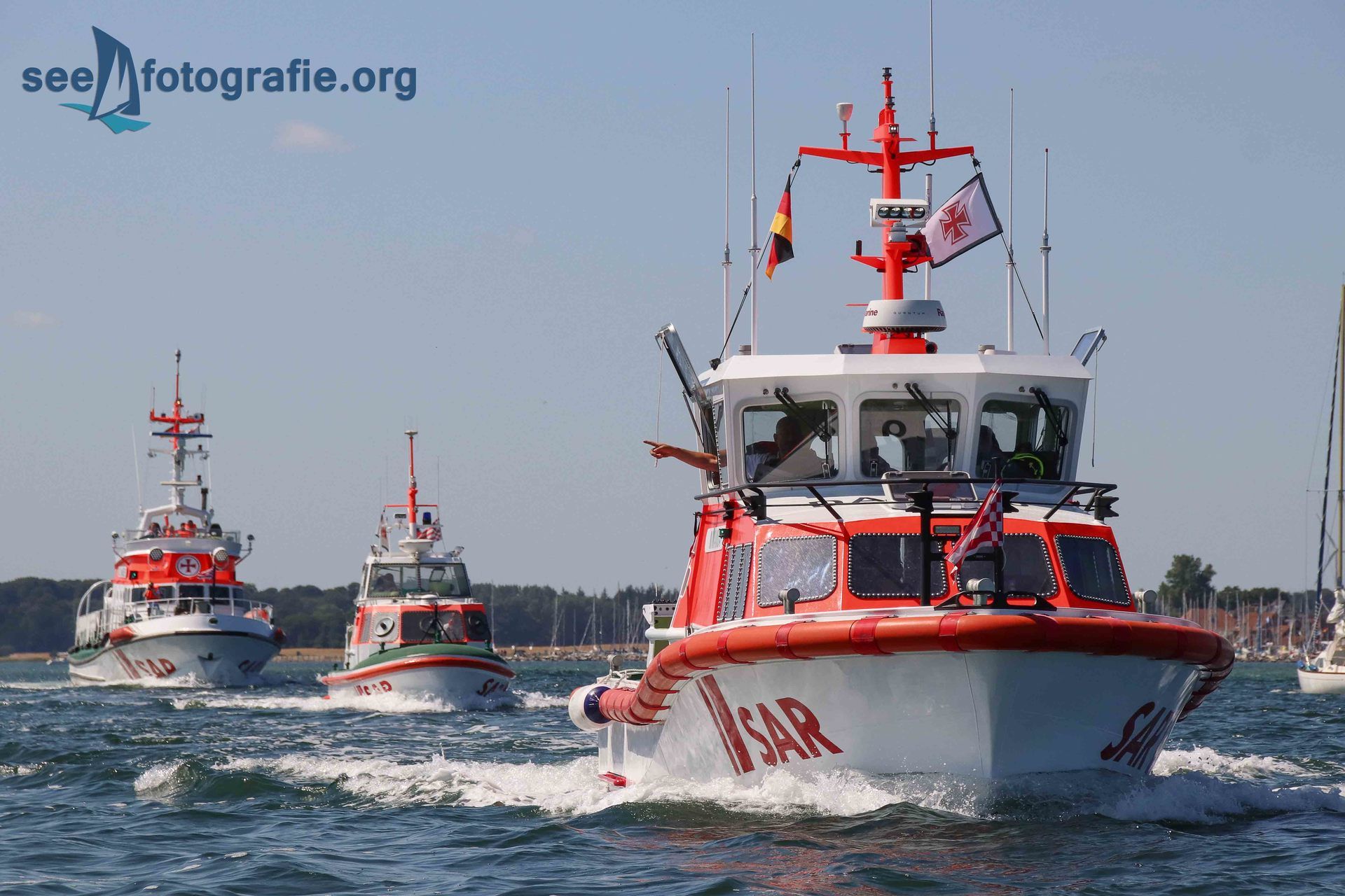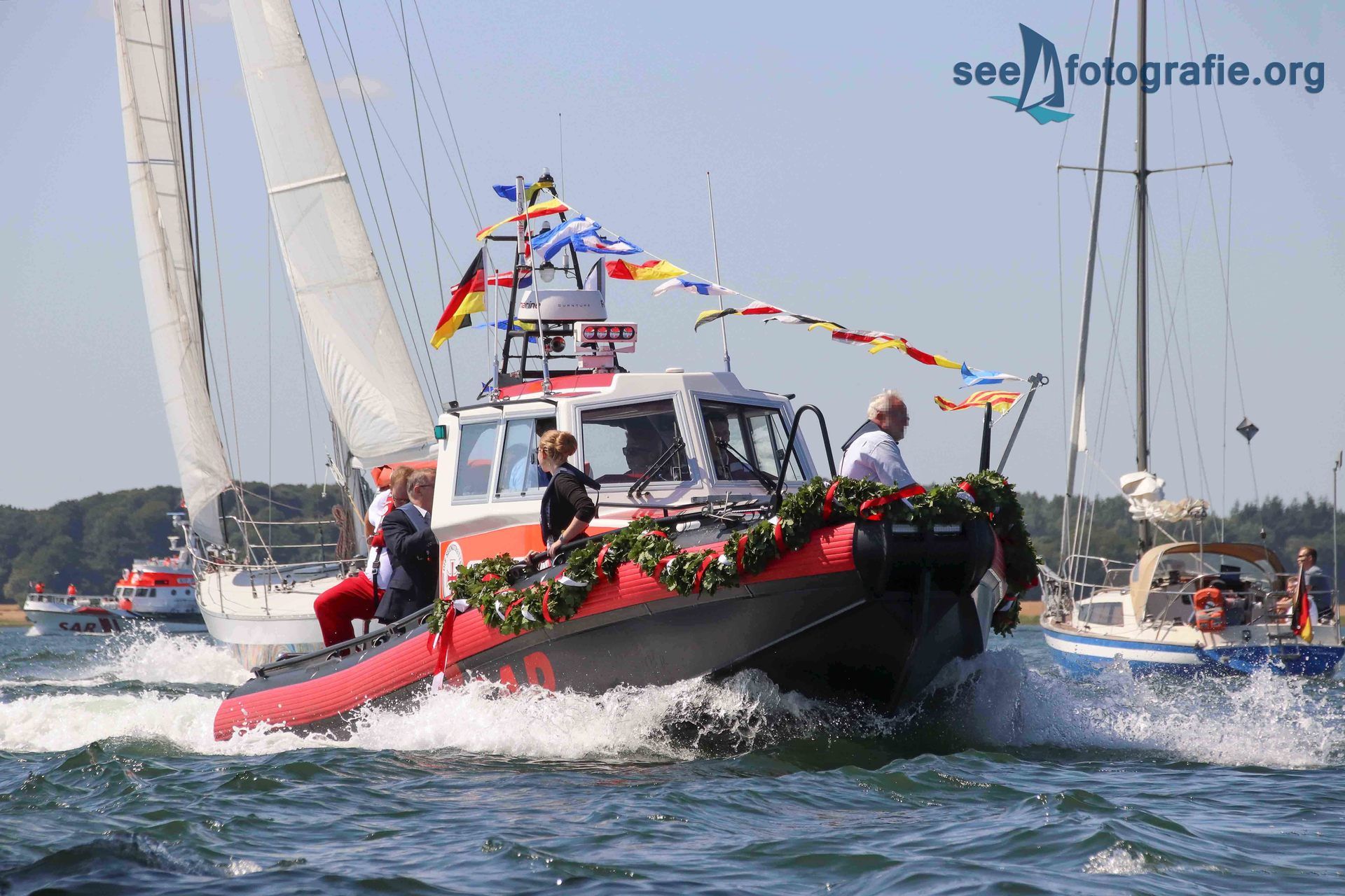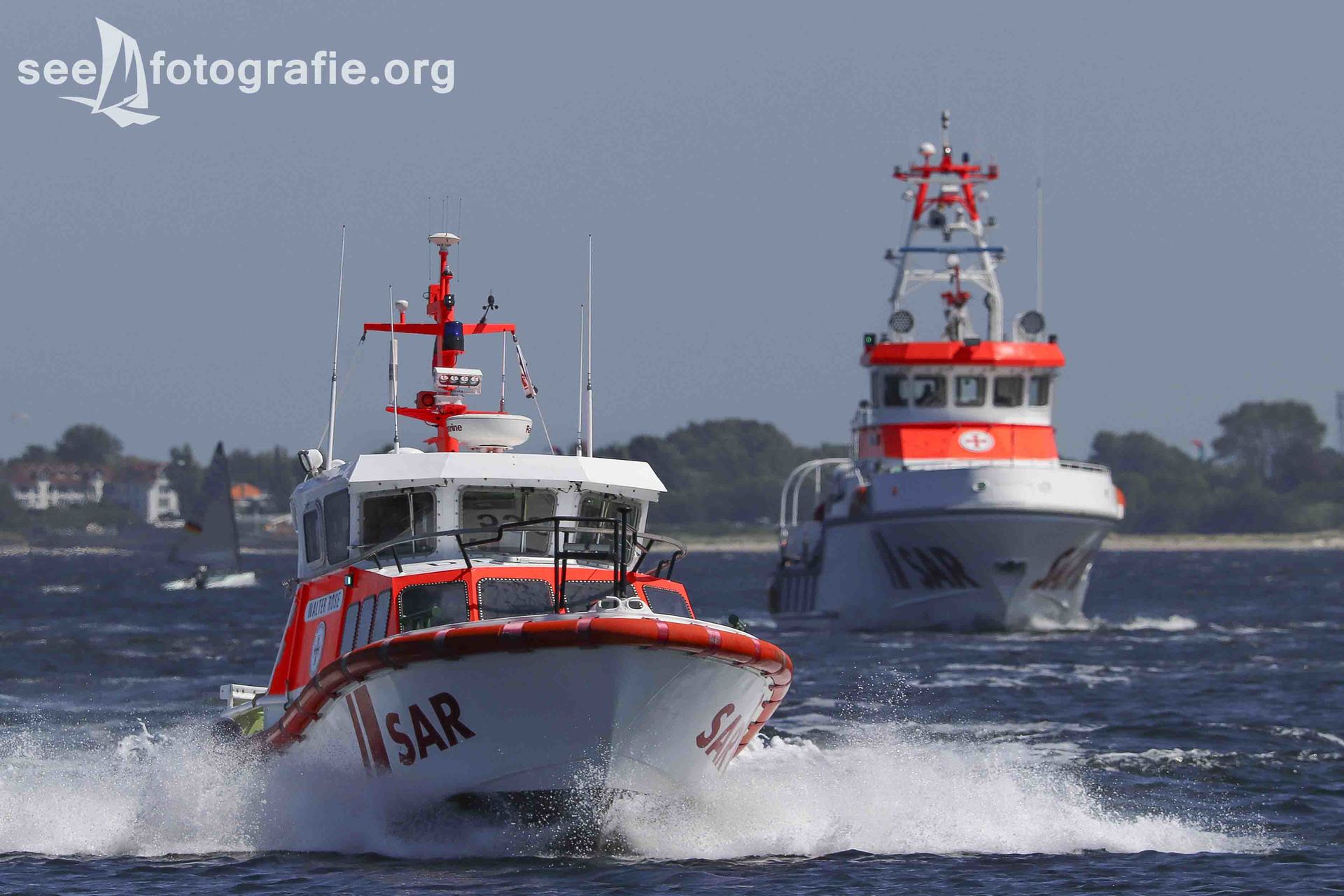 Da unser Boot nur sehr langsam lief, konnten wir alle Einheiten fotografieren, als sie uns überholten. Auf der Schlei haben aber auch Seenotretter ein Tempolimit zu beachten, weshalb das Überholen nur langsam von statten lief und wir recht viel Zeit hatten alle Einheiten in Szene zu setzen.