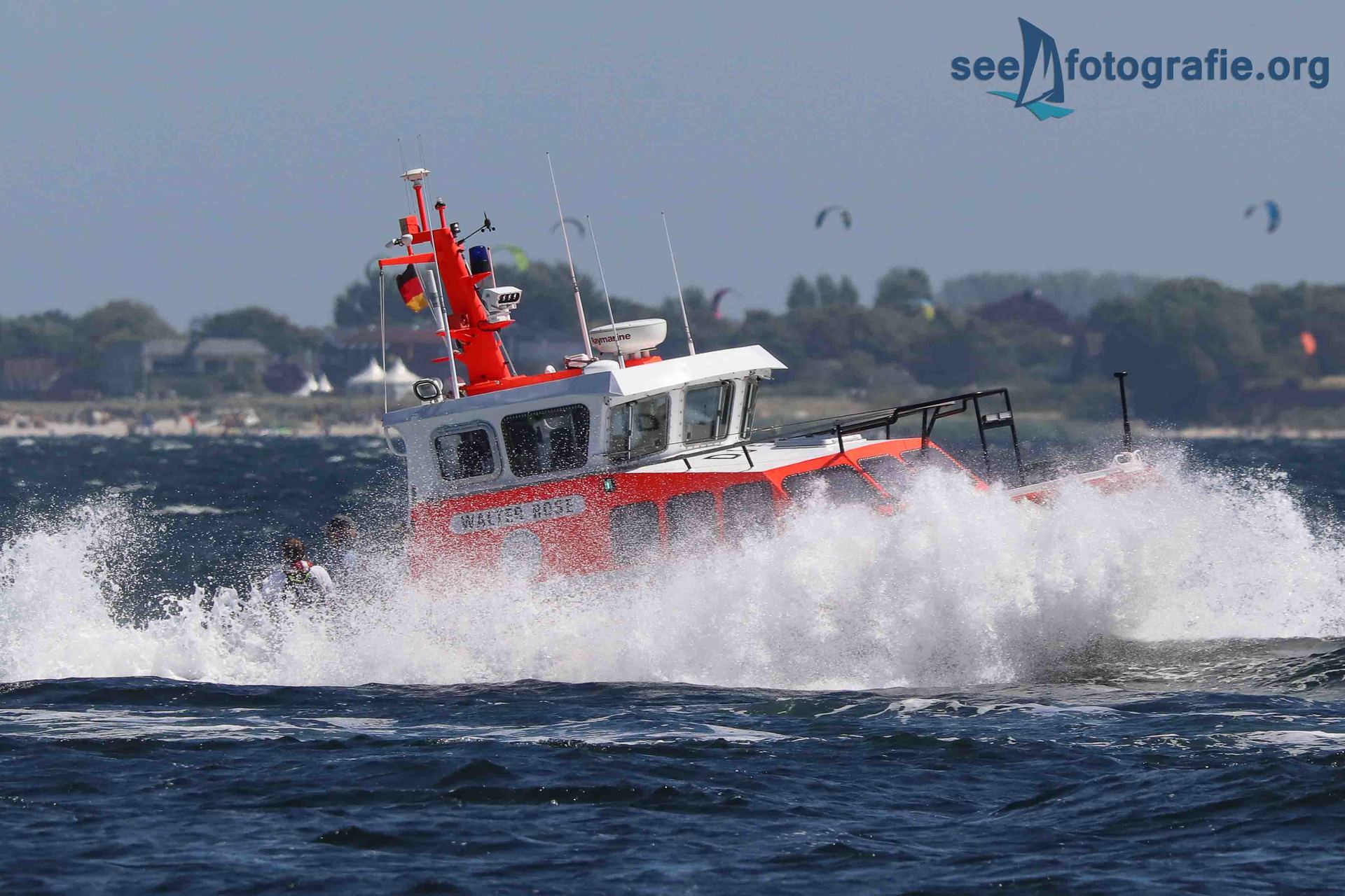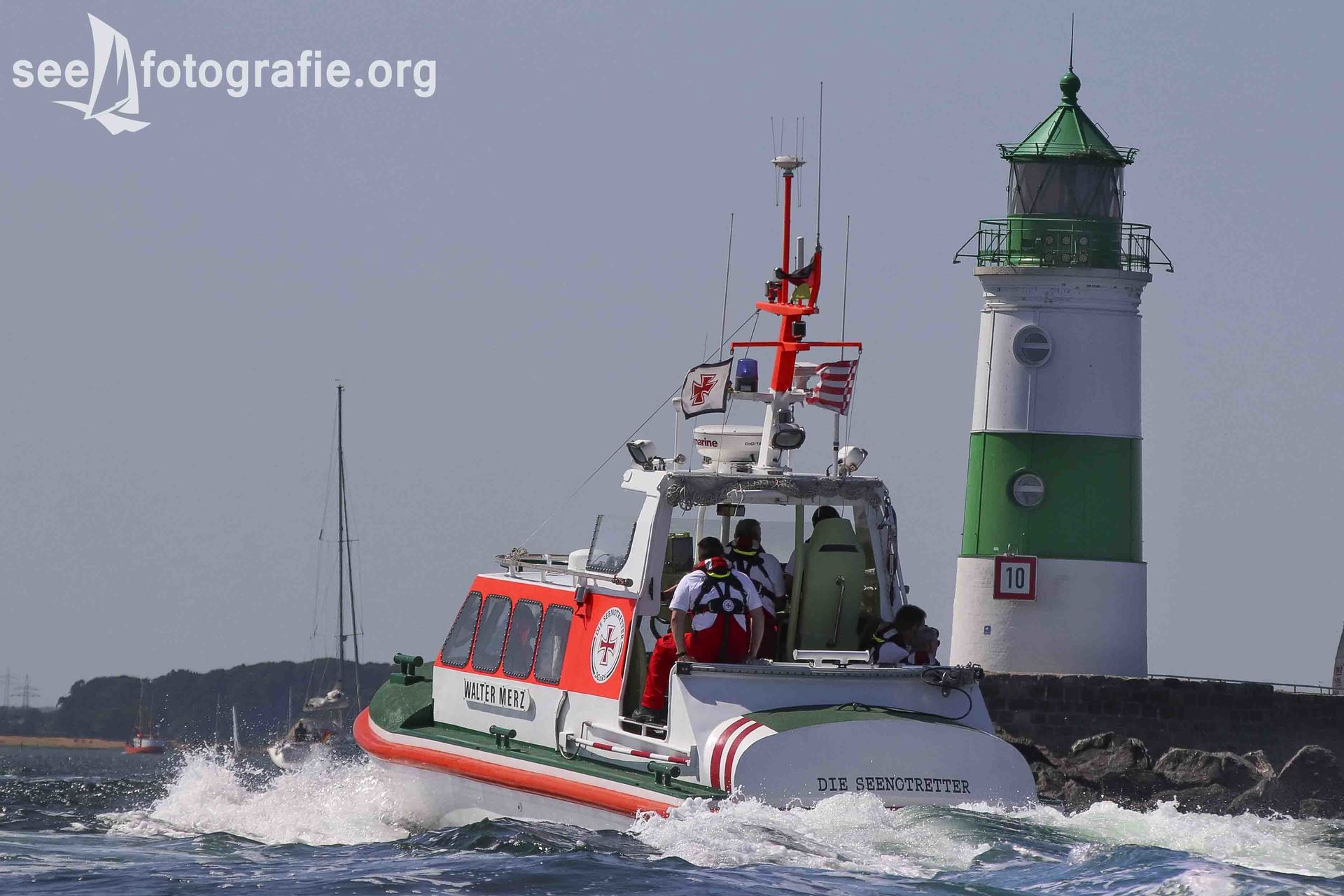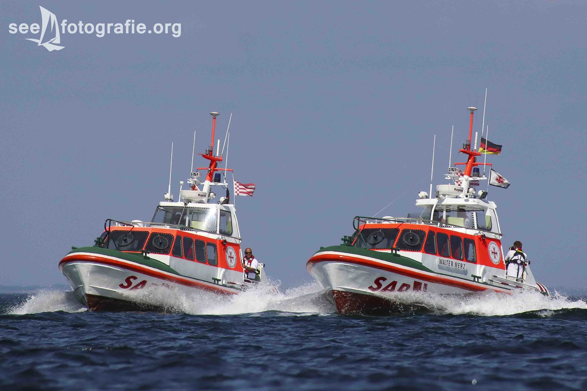 Da unser Boot nur sehr langsam lief, konnten wir alle Einheiten fotografieren, als sie uns überholten. Auf der Schlei haben aber auch Seenotretter ein Tempolimit zu beachten, weshalb das Überholen nur langsam von statten lief und wir recht viel Zeit hatten alle Einheiten in Szene zu setzen.