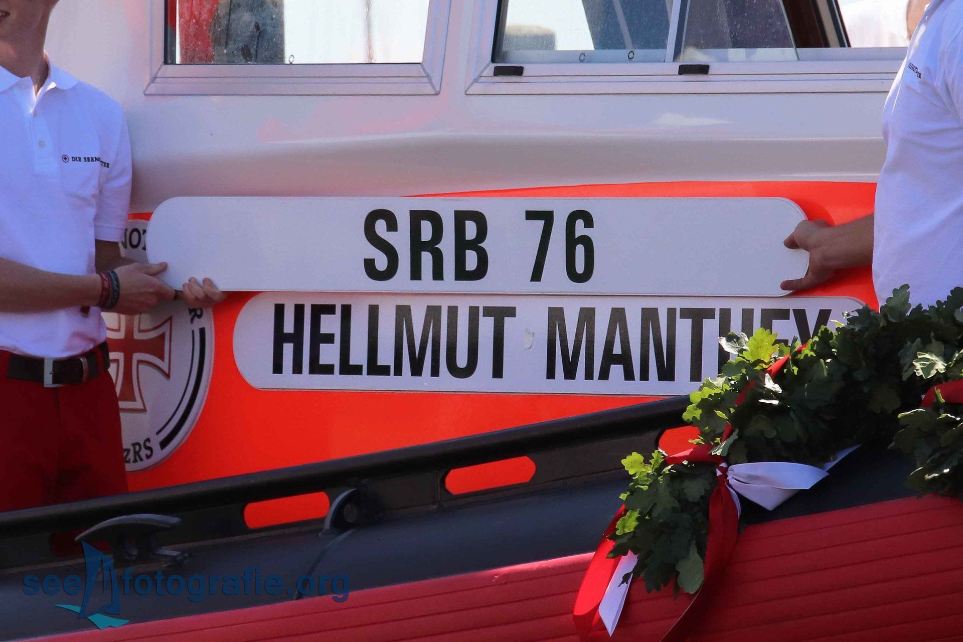 Die Taufpatin taufte dann das Seenotrettungsboot SRB 76 auf seinen neuen Namen HELLMUT MANTHEY.