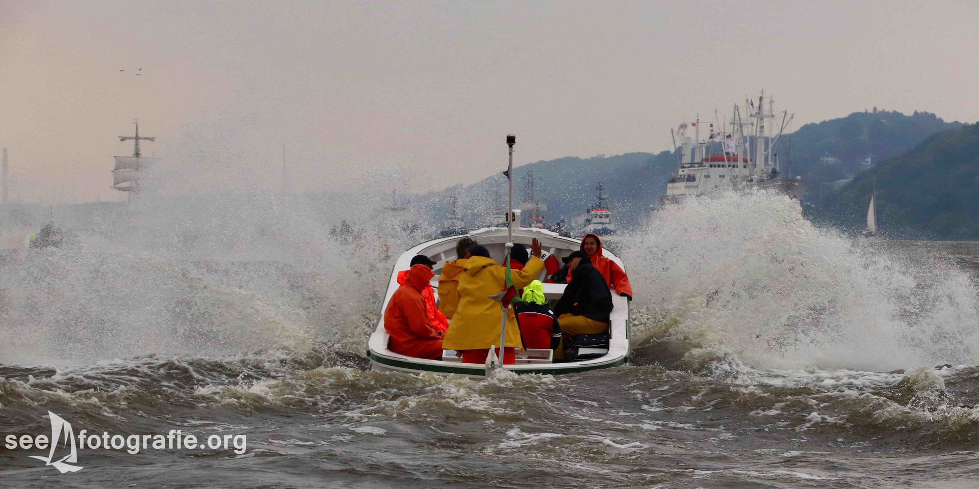 Bei dem Rennen der Festmacherboot ging es wild zur Sache: Das Wasser war aufgewühlt, die Gischt schäumte. Spektakuläre Bilder sind dabei entstanden und wir waren sehr beeindruckt, was die alten Boote so leisten können.