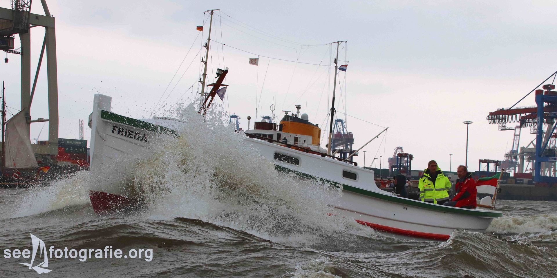 Seit einiger Zeit freuten wir uns schon auf unseren Besuch des Hamburger Hafengeburtstages. Bereits über ein Jahr vorher starteten wir unsere Planungen. So überlegten wir zum Beispiel, wie wir die Einlaufsparade aus einer möglichst spannenden Perspektive aus fotografieren konnten. Bei unserem letzten Besuch auf Helgoland kamen wir auf die Idee diese von einem Börteboot des Verein zum Erhalt Helgoländer Börteboote zu begleiten. Dort wurden wir sehr freundlich aufgenommen. Nach einer kurzen Wartezeit legten die kleinen Börteboote dann am Sandtorkai ab. Von dort fuhren wir durch den Reiherstieg und den Köhlbrand bis auf die Höhe vom Airbus-Werk Finkenwerder. Während dieser kleinen Hafenrundfahrt erlebten wir schon einiges: Bereits nach kurzer Zeit passierten wir die Norderwerft. Hier konnten wir ein Feederschiff sowie ein Flottendienstboot der deutschen Marine bestaunen. Ein weiteres Highlight war die Passage der Köhlbrandbrücke. Genau in dem Moment als wir diese passierten, begann es zu regnen. Schnell hörte es wieder auf und wir waren glücklich, dass wir nicht allzu durchnässt waren. Dies sollte sich jedoch schnell ändern. Sobald wir in die Elbe abbogen, begann unser Boot etwas zu stampfen. Mehrere Male bekamen wir die Gischt direkt ab, da wir gegen die Welle anfahren mussten, dabei hatten wir große Angst um unsere Technik. Glücklicherweise blieb alles heil. So war es uns auch möglich, bereits die ersten Bilder von einigen Teilnehmer der Einlaufparade zu machen. Nach einer kurzen Pause in einem Yachthafen, gliederten wir uns in die Parade ein. Wir befanden uns zwischen dem russischen Segelschulschiff MIR und dem ehemaligen Stückgutfrachter CAP SAN DIEGO. Dieser kamen wir beeindruckend nah und es gelangen uns einige recht seltene Bilder des Wahrzeichens Hamburgs. Nach einiger Zeit wurden wir von ihr allerdings überholt, woraus sich viele neue und spannende Motive ergaben.