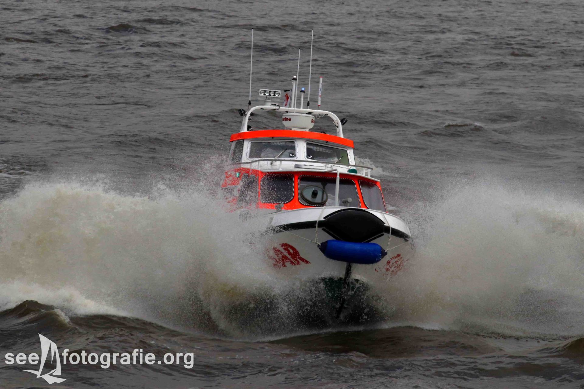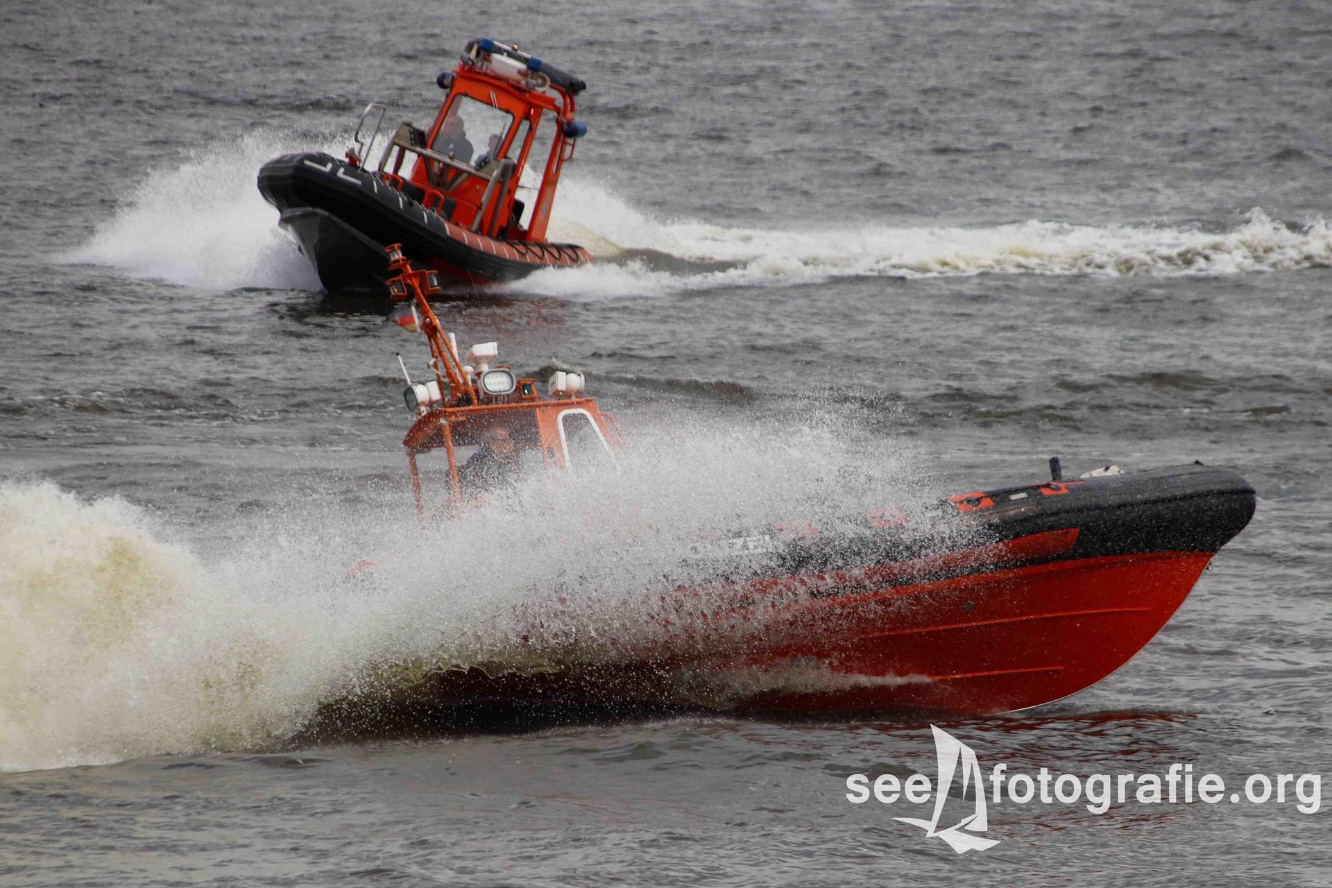 Das nächste Programm-Highlight beobachteten wir ebenfalls von der BORKUMRIFF. Die Tochterboote des Zolls, der Küstenwache, der Polizei und der DGzRS zeigten ihre Leistungsfähigkeit den Zuschauern hautnah. Die Boote fuhren mit sehr hoher Geschwindigkeit äußerst nah an uns vorbei, zeigten so ihre Schnelligkeit, Wendigkeit und dennoch die guten Fahreigenschaften. Außerdem wurde oft vorgeführt wie eng der Wendekreis ist - es sah manchmal fast so aus, als würden die Tochterboote sich auf der Stelle drehen können.