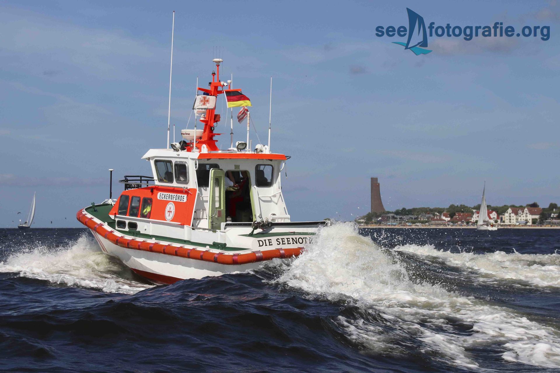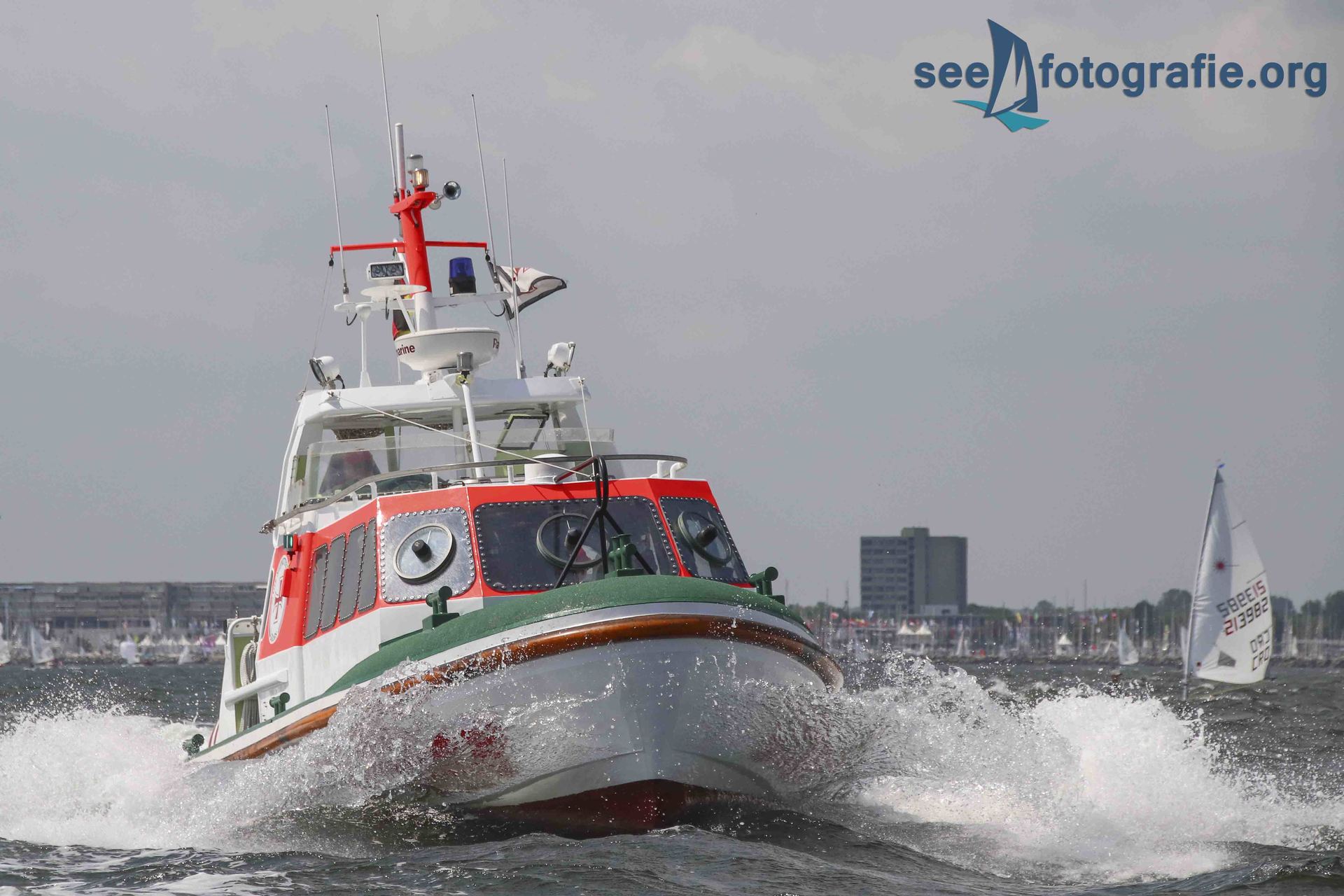 In der letzten Woche besuchten wir die Kieler Woche. Durch etliche Erzählungen, dass an dieser Segel-Veranstaltung einige Einheiten der DGzRS teilnehmen, um diese abzusichern, nahmen wir den Weg nach Laboe auf uns und erlebten das Event. Nach einigen Überlegen stellten wir fest, dass es wohl sehr schwierig werden würde gute Bilder von Land aus zu machen. Aus diesem Grund entschieden wir uns, ein kleines Motorboot zu mieten, mit diesem fuhren wir dann auf die Kieler Förde und die Ostsee hinaus. Am Anfang erschien uns das nur fünf Meter lange Boot als äußerst wackelig und instabil. Nach einiger Zeit merkten wir aber, dass wir uns voll auf das kleine Boot verlassen konnten. So gelang es dann auch die Einheiten recht gut zu fotografieren.