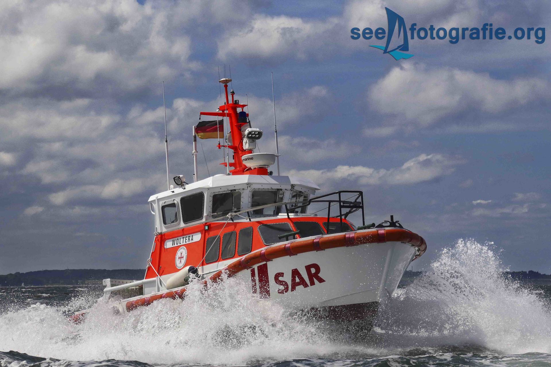 Die Seenotrettungsboote WOLTERA (Station Lippe) und ECKERNFÖRDE (Station Eckernförde) aus der bewährten 9,41/10-Meter Klasse kamen jeden Tag in die Kieler Förde gefahren um die Segelregatten abzusichern.