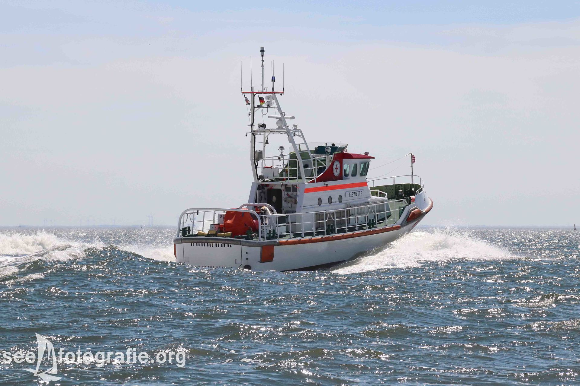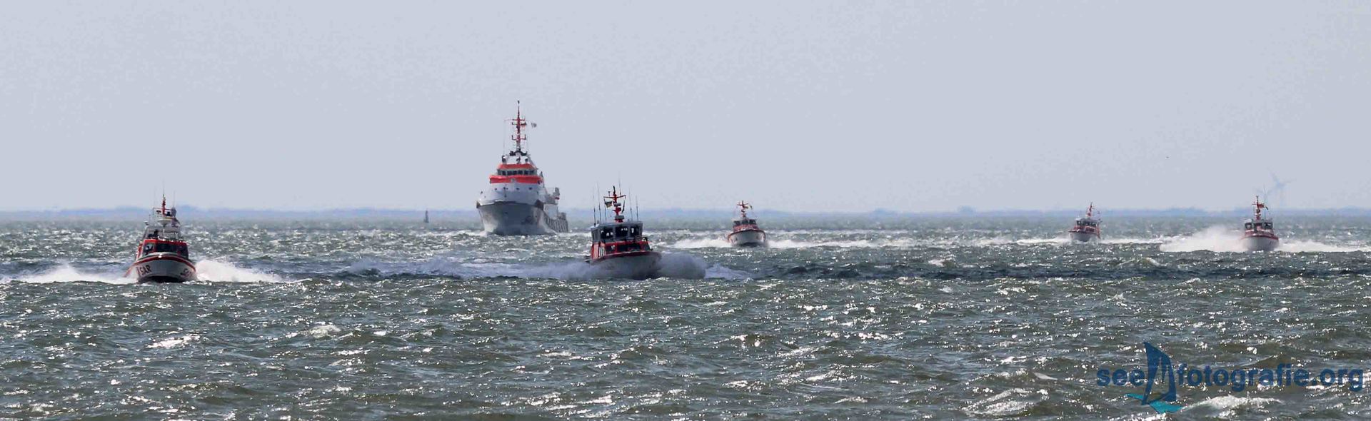 Ab Horumersiel fuhren wir mit einem sehr netten Herren mit seinem Boot auf die Nordsee hinaus und warteten dort auf die kommenden Boote und Kreuzer. Den Anfang machte die EISWETTE, welche aus Nordstrand zur Übung kam.