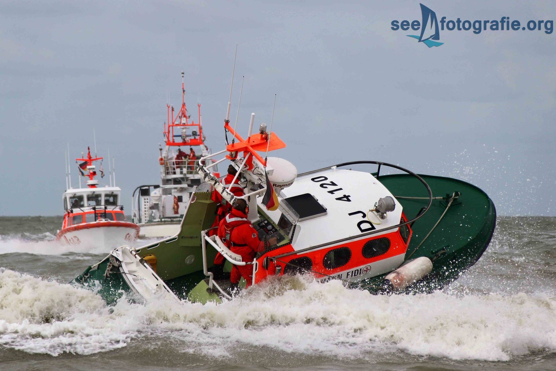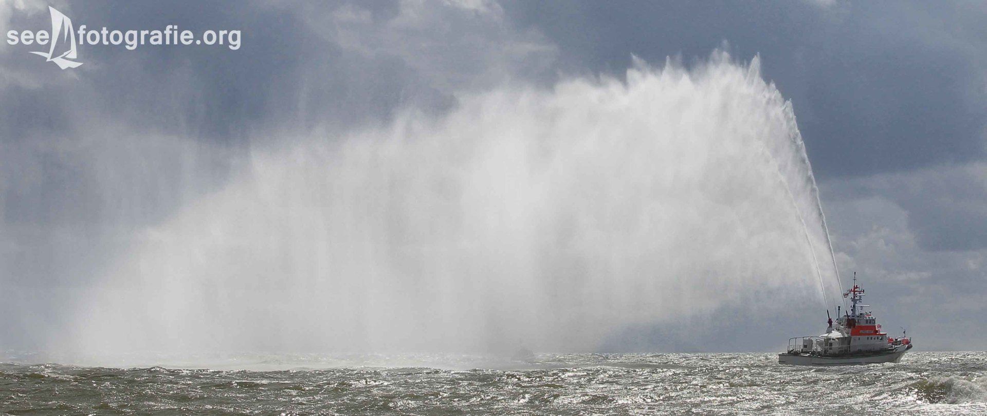 Das zu dieser Zeit frisch getaufte Seenotrettungsboot HANS DITTMER wurde anschließend als Schlepper genutzt: Die Stärke des Bootes wurde gezeigt, indem es den größeren Seenotkreuzer abschleppte. Den Abschluss bildete nach dem Demonstrieren der Feuerlöschkanonen ein herzliches Winken der Besatzungen.