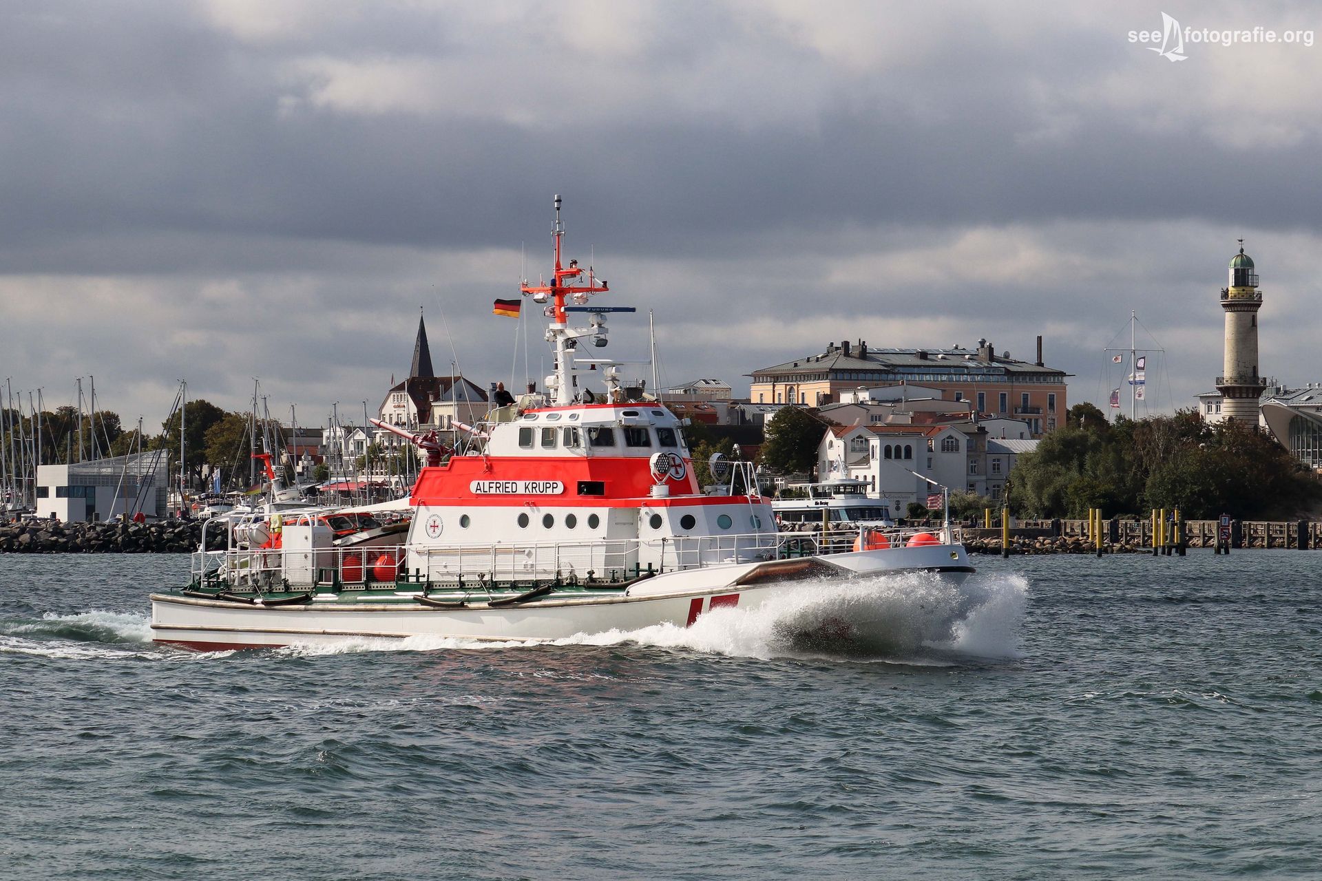 Von der Rostocker Werft Tamsen auf der Warnow in Richtung Ostsee nahm der Seenotkreuzer Kurs auf den Nord-Ostsee-Kanal, danach Bremerhaven und weitere Zwischenstationen in den Niederlanden, Frankreich, Spanien. Begleitet wurde das Auslaufen von dem in Warnemünde stationierten Schwesterschiff ARKONA.