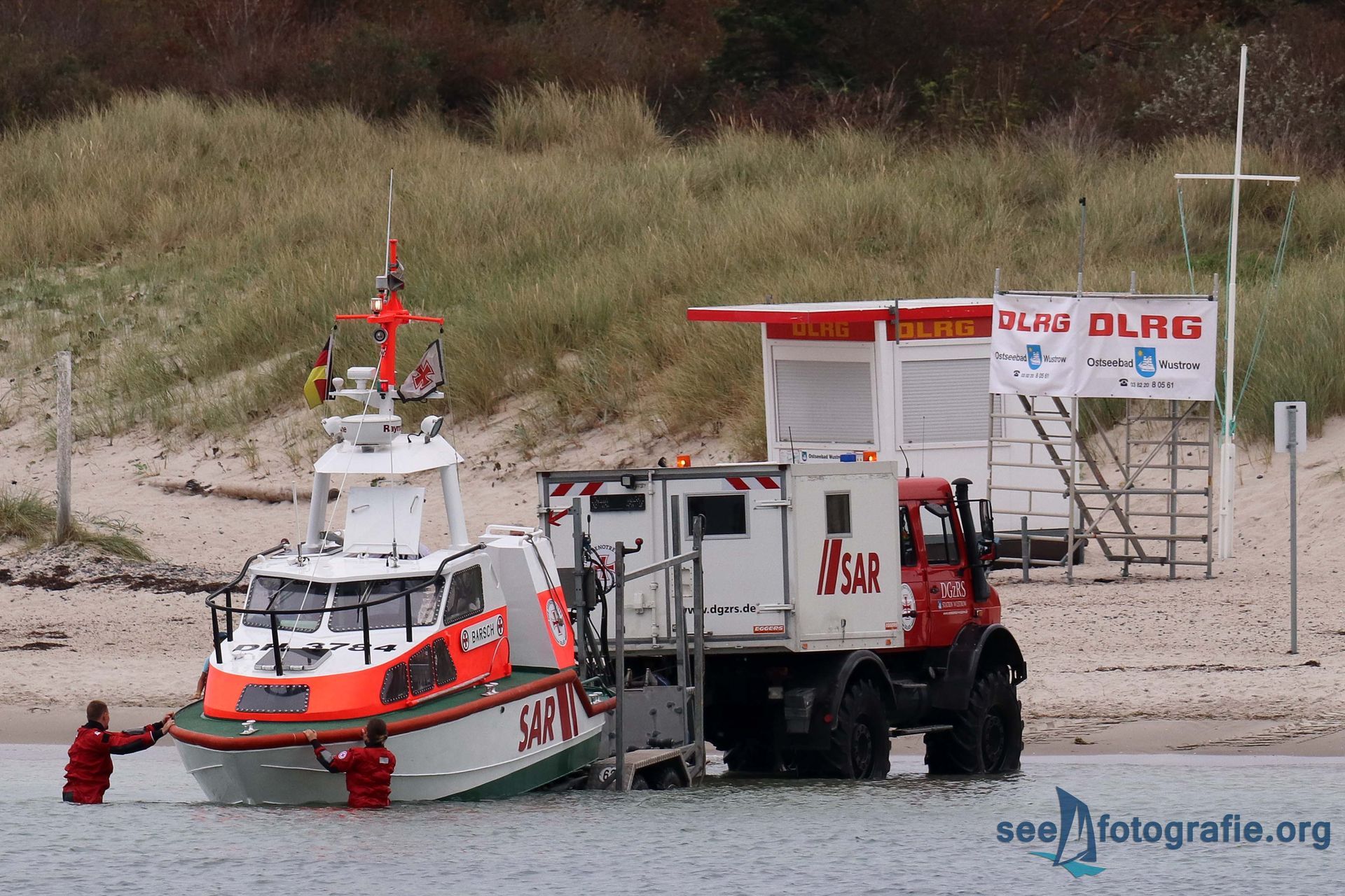 Neben den in Ueckermünde stationierten Seenotrettungsbooten EVA AHRENS-THIES und NEUHARLINGERSIEL nahmen die Nachbarstationen Zinnowitz mit den Seenotrettungsbooten OTTO BEHR und HECHT sowie Greifswalder Oie mit dem Seenotkreuzer BERTHOLD BEITZ teil.